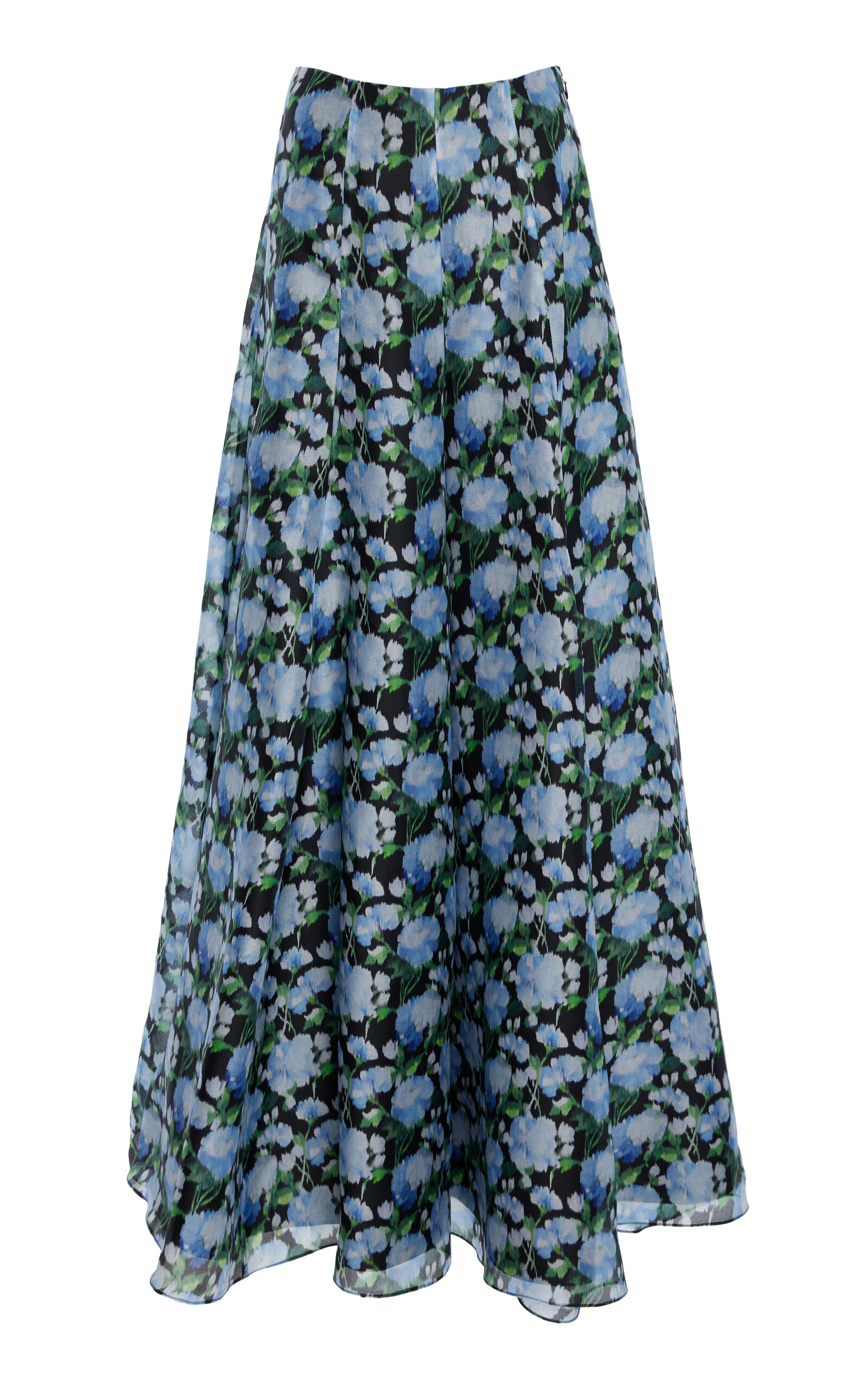 PRODUCT DETAILS - High-waisted, exaggerated flare leg, wide-cut - Concealed zip and hook fastening - Unlined - Composition: 100% Silk - Color: Blue Multi - Dry clean only - Pre-Fall '25