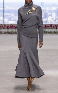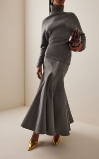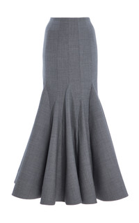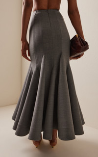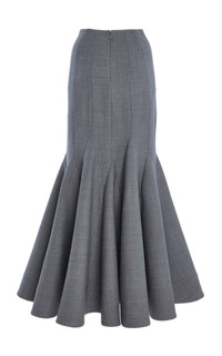 PRODUCT DETAILS - Fall '25 - Slim fit, mid rise, godet pleating - Zipper fastening - Composition: 97% Virgin Wool, 3% Elastane - Color: Melange Grey - Dry clean - Made in the USA
