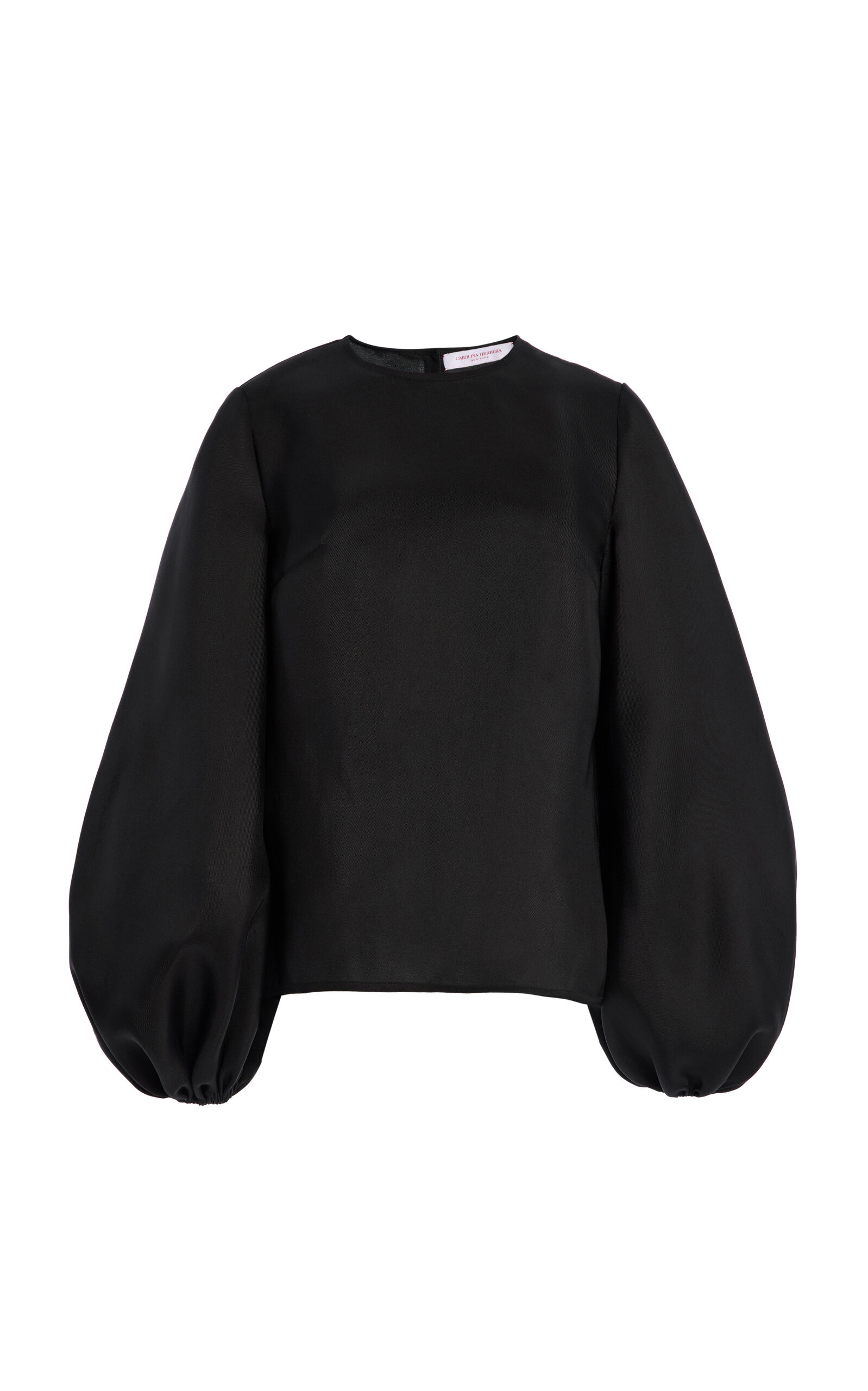 PRODUCT DETAILS - Voluminous puff sleeve, crewneck, slim fit - Button fastening through back - Composition: 100% Silk - Color: Black - Dry clean - Made In: United States of America - R26 Chalet