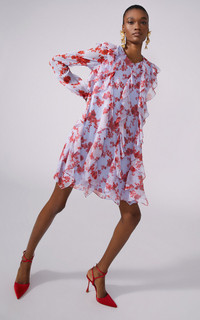 Ruffled Silk Chiffon Mini Dress multi