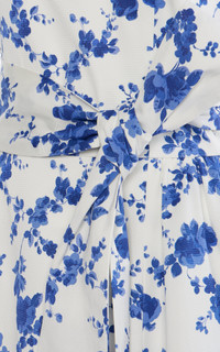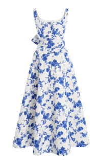 PRODUCT DETAILS - Sleeveless, wide sash belt, fit-to-flare, midi hem - Ships with self-belt - Concealed zip fastening along back - Unlined - Composition: 49% Cotton, 47% Viscose, 4% Elastane - Color: White Multi - Dry clean - Cabana '25