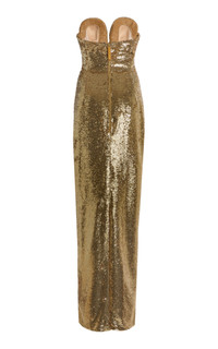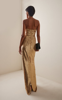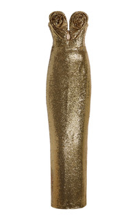 Strapless Rosette-Detailed Sequined Column Gown gold