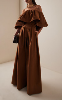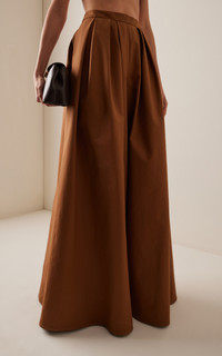 PRODUCT DETAILS - High-waisted, exaggerated flare leg, wide-cut - Concealed zip and hook fastening - Unlined - Composition: 95% Cotton, 5% Elastane - Color: Tan - Dry clean only - Pre-Fall '25