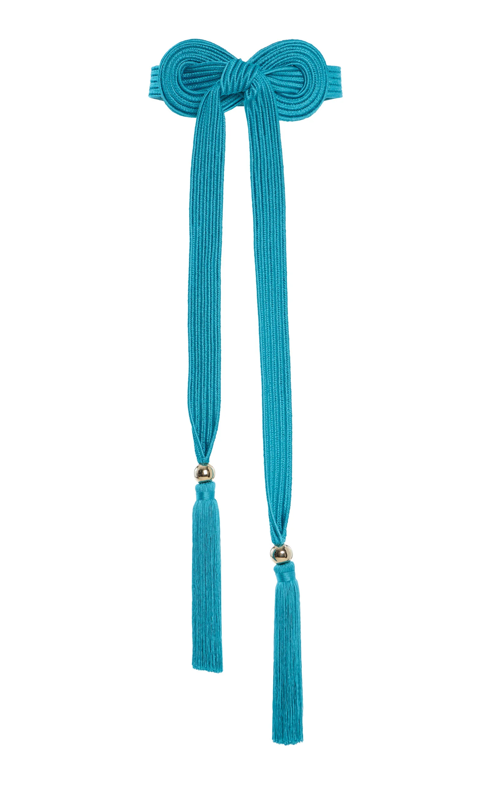 PRODUCT DETAILS - Slim fit, trapunto braiding, bead detail, tassels - Tie fastening - Composition: 100% Rayon - Color: Turquoise - Dry Clean Only - Made In: Italy - Resort '26
