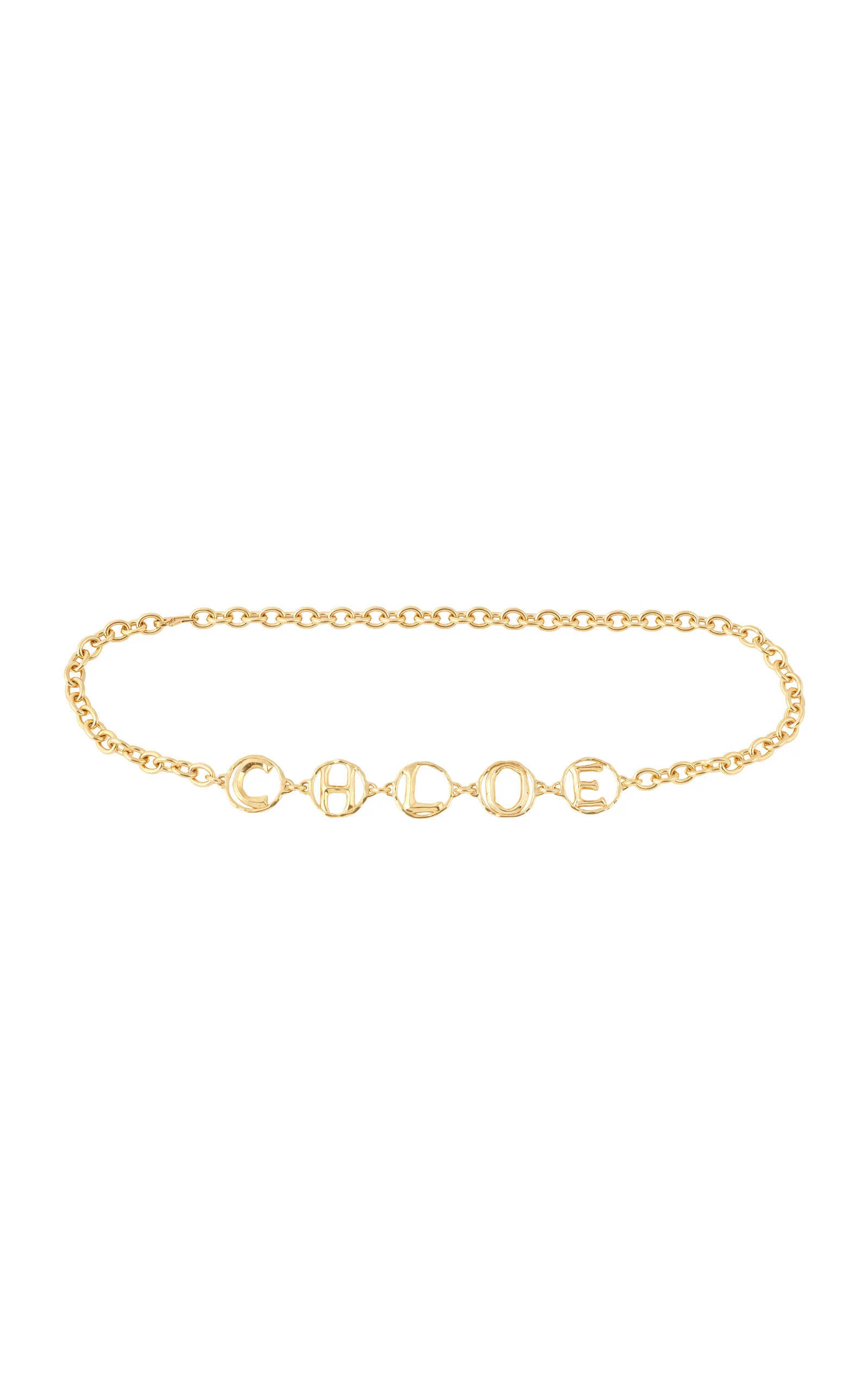Founded in 1952, the legendary French Maison is renowned for its bohemian couture that strikes notes of youthful nostalgia and sunny nonchalance. Inspired by a design rooted in the Maison's heritage, this chain belt features round links elevated by a Chloe lettering in gold brass. It can be worn high on the waist or low on the hips. PRODUCT DETAILS - Clasp fastening - Composition: brass - Made in Italy
