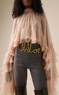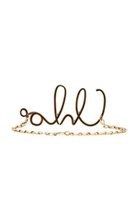 Chemena Kamali’s debut collection is finally here. Defined by romantic flourishes and an earthy color palette, it’s the picture of modern-day bohemian glamour—alive with the feminine essence of the Parisian house. This slim chain belt is punctuated with exaggerated cursive text cast from polished gold-tone brass. Style it over dresses or pants to add some chic character. PRODUCT DETAILS - Clasp fastening - Composition: 100% brass - Imported