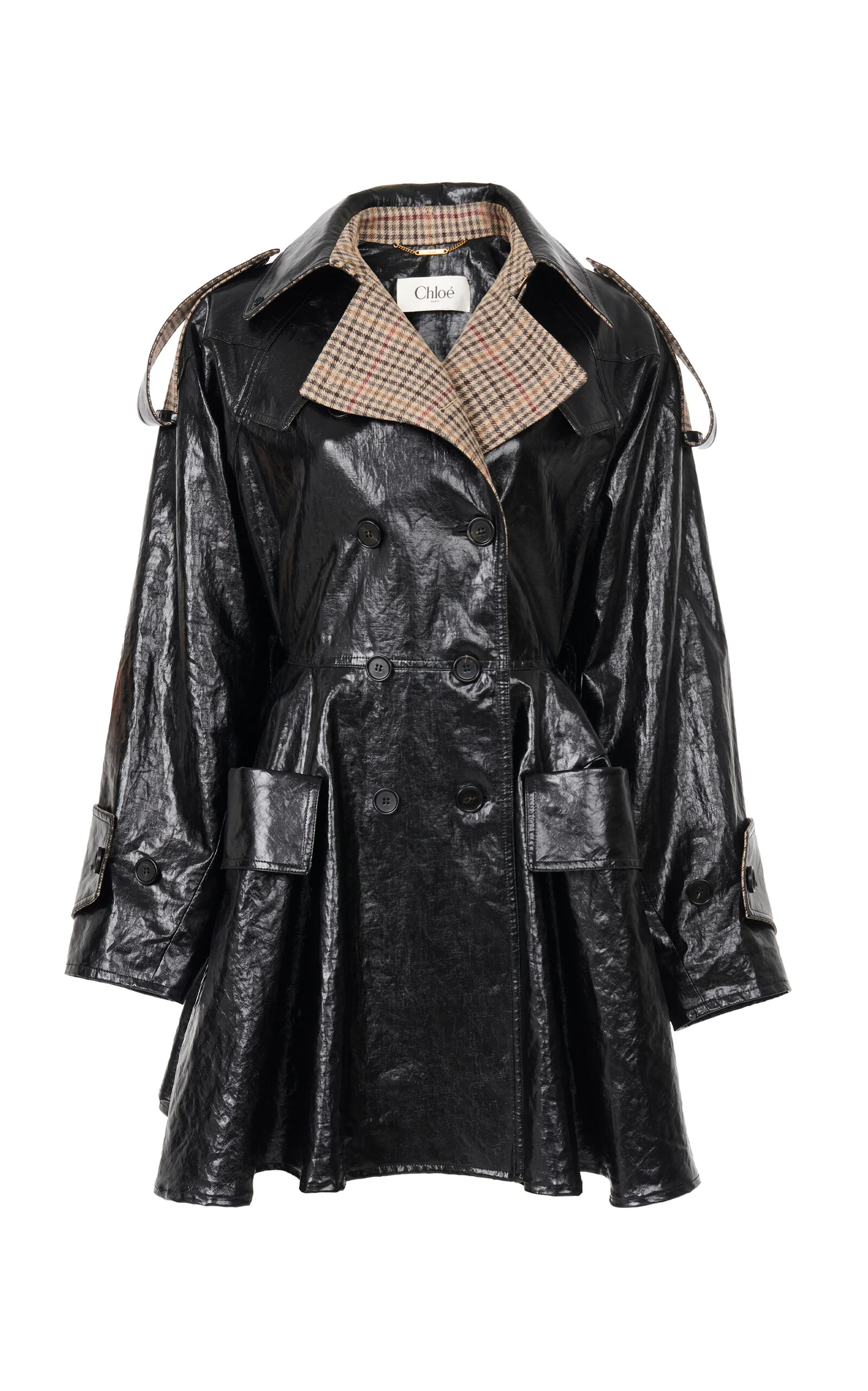 PRODUCT DETAILS - Short, double-breasted, long sleeve, flared hem - Button fastening through front - Composition: Light Coated Linen - Color: Black-191 - Dry clean only - France - Fall/Winter '25
