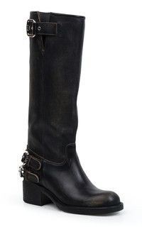 Founded in 1952, the legendary French Maison is renowned for its bohemian couture that strikes notes of youthful nostalgia and sunny nonchalance. Crafted from lambskin, the 'Dakota' is inspired by classic biker boots. The sturdy structure combines a tall tube leg with a low stacked heel for day-long comfort. Chloe-engraved gold-toned hardware finishes this versatile pair. PRODUCT DETAILS - Heel height measures approximately 40mm/ 1.5" - Pull on - Composition: lambskin leather - Made in Italy
