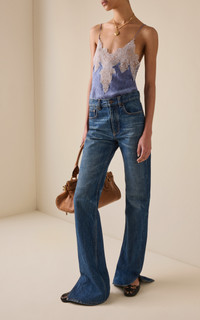 Lace-Trimmed Silk-Jacquard Lingerie Top blue