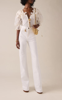 Rigid High-Rise Organic Denim Flared Jeans white