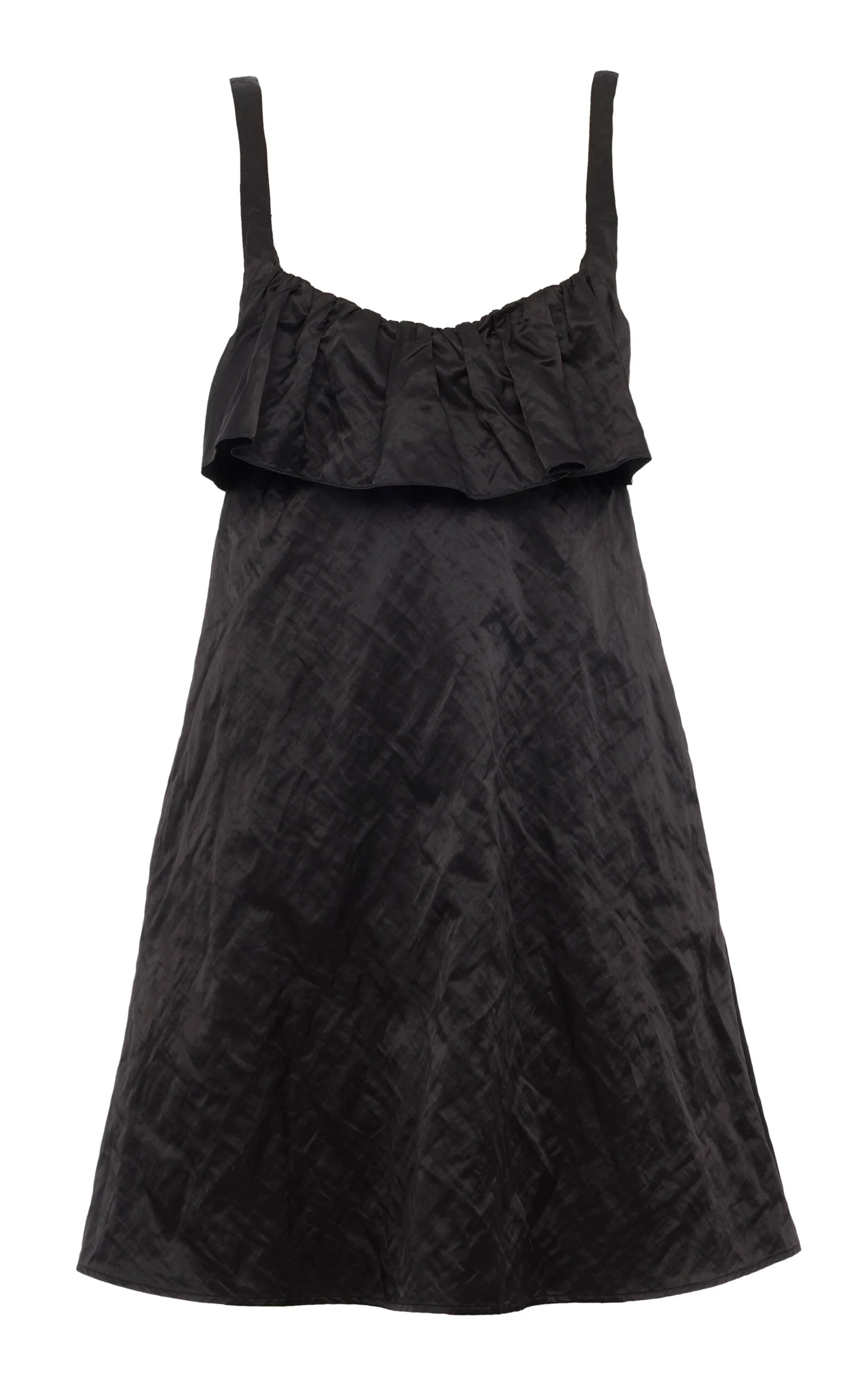Founded in 1952, the legendary French Maison is renowned for its bohemian couture that strikes notes of youthful nostalgia and sunny nonchalance. Constructed from washed technical satin, this mini dress is designed with thin straps and a ruffled neckline, falling into a playful A-line silhouette with a softly crinkled finish. Contrast the dark hue with lighter accessories. PRODUCT DETAILS - Resort ’26 - Concealed zip fastening at back - Composition: Washed Technical Satin - Dry clean - Made in France SIZE & FIT - Our model is wearing a size 34 - Model is 5’9.5” with a 30.5” bust, 23” waist, and 34.5” hip - Fits true to size, our fit specialist recommends taking your normal size