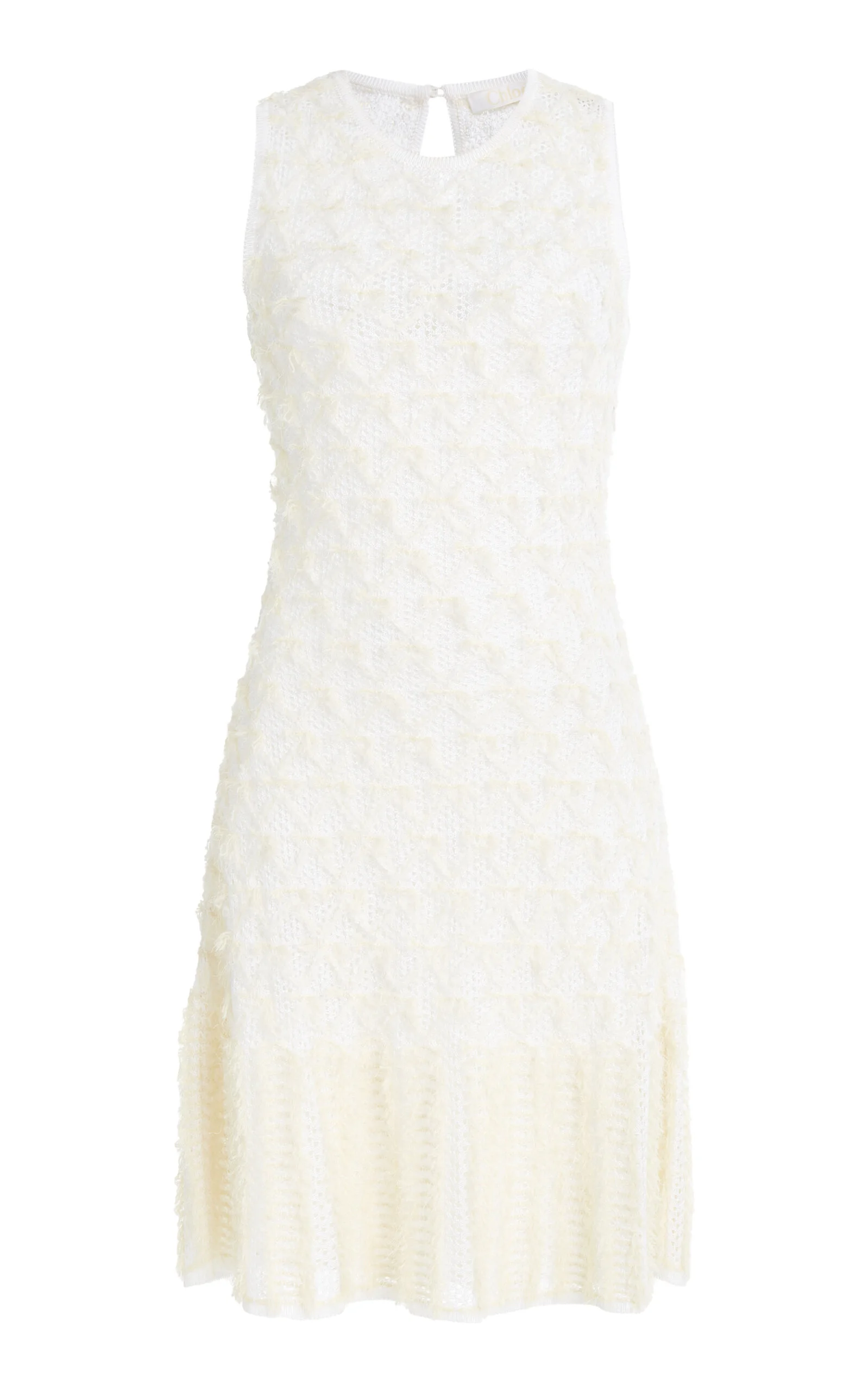 Silk Cashmere Tweed Lace Knit Mini Dress white