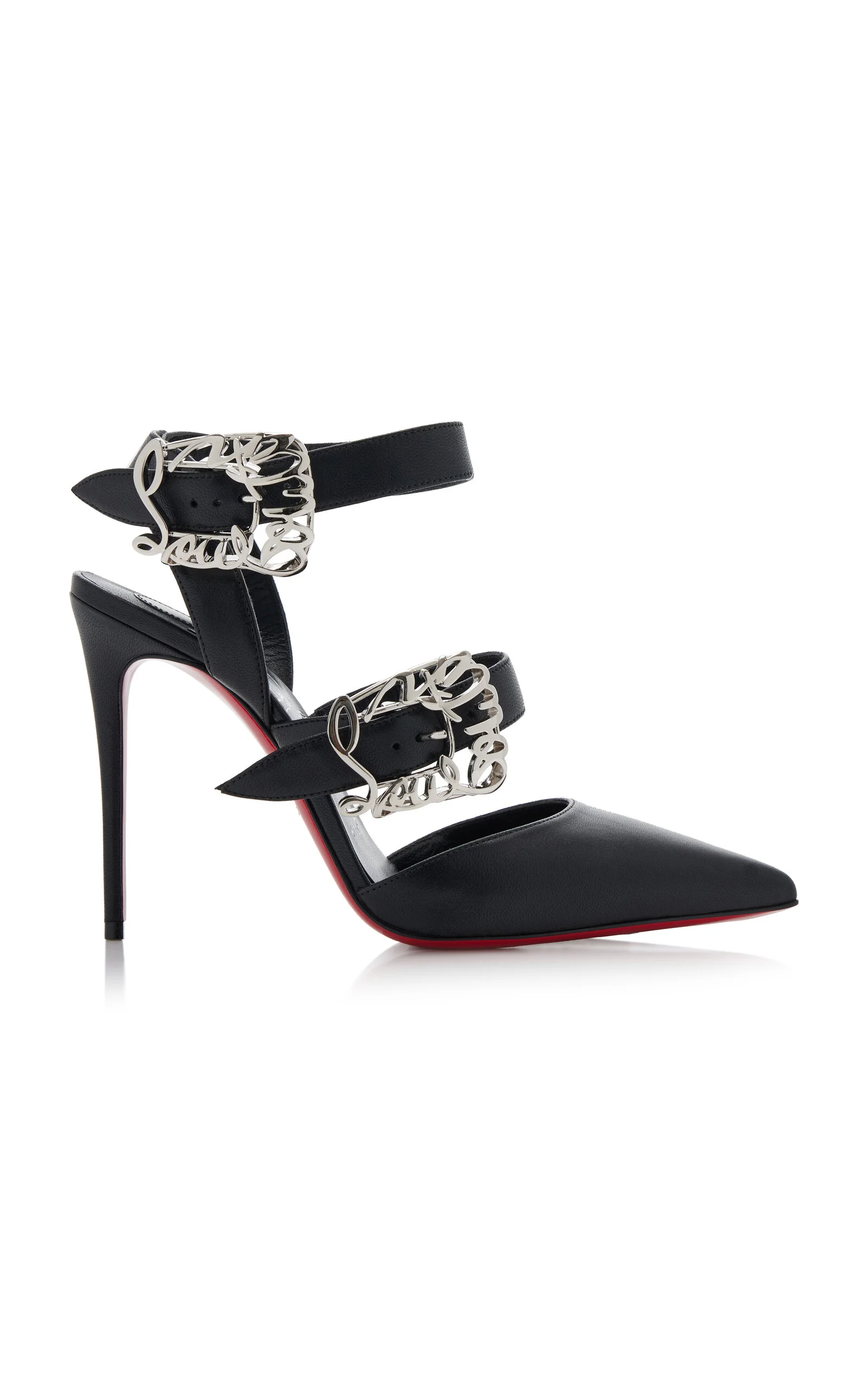 His shoes are instantly recognizable, innately covetable and fashion-industry famous. Lest you get caught up in the cachet, it should be noted that each accessory is very much the sum of its incredible parts. The sleek 'Giddylina' features a pointed-toe silhouette with a slender 100mm stiletto heel and custom monogram buckle straps encasing the foot. PRODUCT DETAILS - Heel height measures approximately 100mm/ 4" - Buckle fastening - Composition: nappa leather - Made in Italy