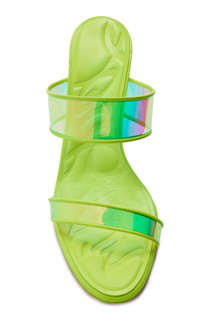 His shoes are instantly recognizable, innately covetable and fashion-industry famous. Lest you get caught up in the cachet, it should be noted that each accessory is very much the sum of its incredible parts. The 'Just Loubi' sandals feature 'Techno' PVC straps set on pearlescent patent leather stiletto. They're, of course, topped off with the signature red sole. PRODUCT DETAILS - Heel measures approximately 85mm/ 3.35" - Slip on - Composition: TPU, patent leather - Designer color: Florescent Yellow - Made in Italy