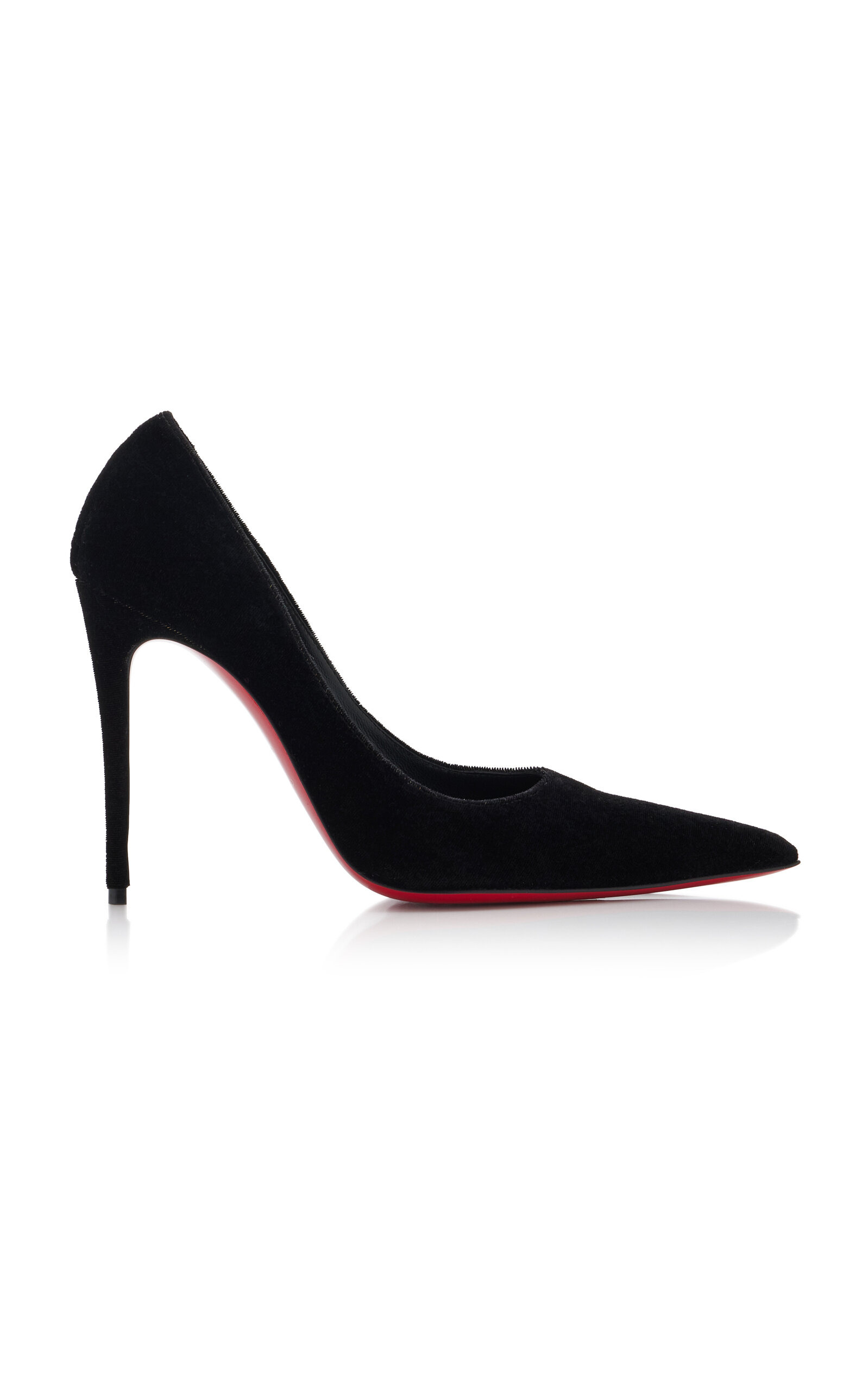 His shoes are instantly recognizable, innately covetable and fashion-industry famous. Lest you get caught up in the cachet, it should be noted that each accessory is very much the sum of its incredible parts. A heightened brand signature, the 'Kate Max' pumps have a classic pointed-toe silhouette made from proprietary veau velours suede with a slender 100mm stiletto heel. With its timeless appeal and sleek lines, it's an absolute wardrobe essential. PRODUCT DETAILS - Heel height measures approximately 100mm/ 4" - Slip on - Composition: veau velours suede - Made in Italy
