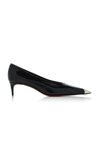 His shoes are instantly recognizable, innately covetable and fashion-industry famous. Lest you get caught up in the cachet, it should be noted that each accessory is very much the sum of its incredible parts. Set on a midi heel, the 'Katissima' has a metallic pointed toe inspired by the thorns of a rose. They're made from the label's 'Vog' fabric, a more flexible patent leather that offers a more supple feel. PRODUCT DETAILS - Heel height measures approximately 45mm/ 1.75" - Slip on - Composition: Vog patent leather - Made in Italy