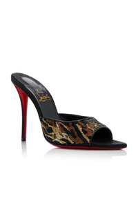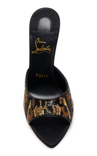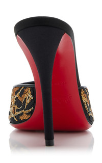 His shoes are instantly recognizable, innately covetable and fashion-industry famous. Lest you get caught up in the cachet, it should be noted that each accessory is very much the sum of its incredible parts. The 'Miss Z' mules have a pointed-toe silhouette expertly crafted in Italy from crepe-satin covered in animal-patterned sequins and elegant embroidery. This model features a new 'Everlasting Red Sole' thanks to an innovative coating technique that ensures resistance and lasting vibrancy for the signature Louboutin red. PRODUCT DETAILS - Heel height measures approximately 100mm/ 4" - Slip on - Composition: crepe-satin, leather - Made in Italy