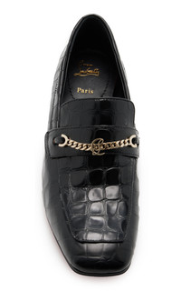 His shoes are instantly recognizable, innately covetable and fashion-industry famous. Lest you get caught up in the cachet, it should be noted that each accessory is very much the sum of its incredible parts. Crafted from croc-embossed calfskin leather, the 'MJ Moc' heeled loafers have a traditional silhouette topped with a gold-tone chain detail across the tongue and updated with a walkable block heel. Wear them with sharp tailoring. PRODUCT DETAILS - Heel height measures approximately 50mm/ 2" - Slip on - Composition: calf leather - Made in Italy