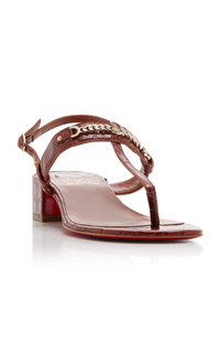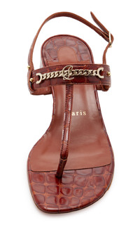 His shoes are instantly recognizable, innately covetable and fashion-industry famous. Lest you get caught up in the cachet, it should be noted that each accessory is very much the sum of its incredible parts. Crafted from slick, croc-embossed leather, the 'MJ Thong' sandals have a sleek silhouette fashioned with a slim thong strap and polished chain hardware. PRODUCT DETAILS - Heel height measures approximately 25mm/ 1" - Buckle fastening - Composition: patent leather/PVC - Made in Italy