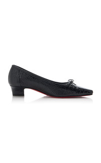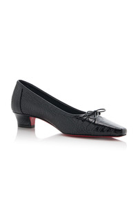 His shoes are instantly recognizable, innately covetable and fashion-industry famous. Lest you get caught up in the cachet, it should be noted that each accessory is very much the sum of its incredible parts. The 'Promessina' ballet flats have an elegant square-toe silhouette made from croc-embossed calfskin set on a low heel. PRODUCT DETAILS - Heel measures approximately 35mm/ 1.35" - Slip on - Composition: calfskin leather - Made in Italy