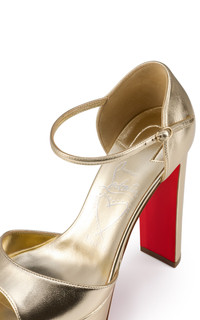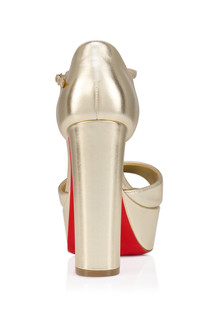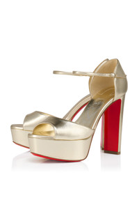 His shoes are instantly recognizable, innately covetable and fashion-industry famous. Lest you get caught up in the cachet, it should be noted that each accessory is very much the sum of its incredible parts. With its open toe, the Sandaloo elegantly reveals the foot. This platform sandal by Maison Christian Louboutin features a slim ankle strap and is set on a 130 mm square heel. It is constructed entirely from platinum laminated nappa leather. This wedding collection model features the Christian Louboutin logo and heart stamp on the insole. PRODUCT DETAILS - Heel height measures approximately 130mm/ 5" - Buckle fastening - Composition: nappa leather - Designer color: Platine - Made in Italy