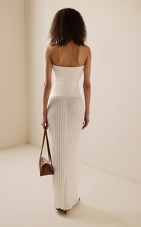 PRODUCT DETAILS - Strapless, slashed bodice, maxi hem - Concealed zip fastening - Composition: 80% Viscose 20% Nylon - Color: white - Dry clean only - Pre-Fall '25