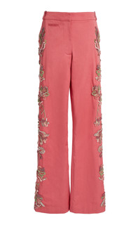 PRODUCT DETAILS - Low-slung, loose wide-cut leg, glass bead embroidery - Concealed zip and hook fastening - Composition: 100% Cotton, Glass Bead Trim - Color: pink - Dry clean only - Pre-Fall '25