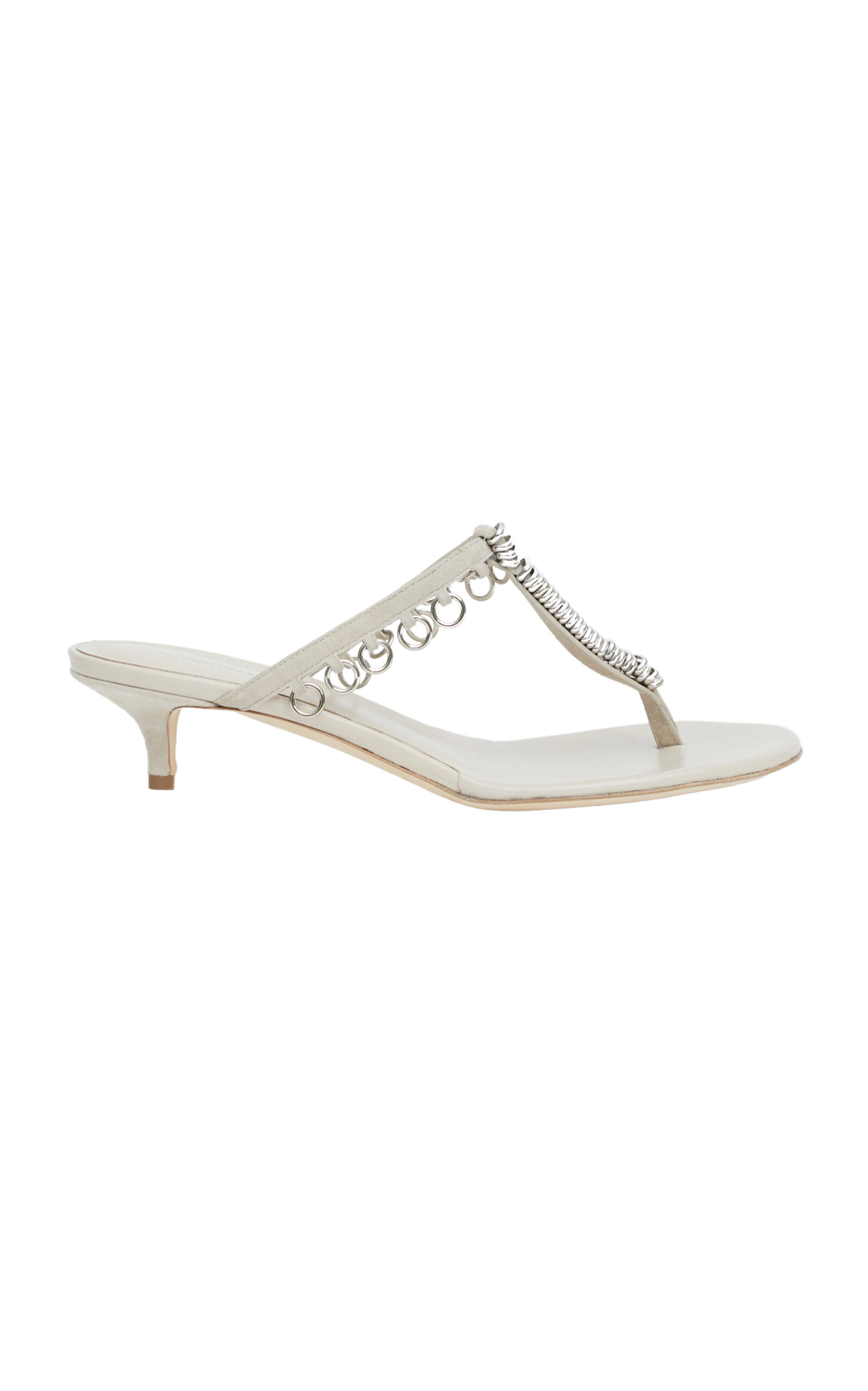PRODUCT DETAILS - Heeled sandals silhouette, leather body, silver hardware details - Slip on - Composition: 100% lamb leather upper, 100% cow leather sole, iron metal trim - Made in Italy SIZE & FIT - Heel height measures 40mm