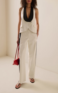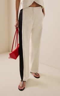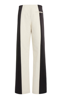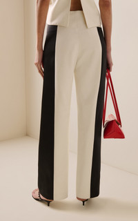 PRODUCT DETAILS - Low-waisted, tuxedo contrast, noile tailoring, wide-leg - Concealed zip and hook fastening - Composition: 100% Silk, 85% Polyester 15% Rayon, 100% Viscose - Color: black/white - Dry clean only - Pre-Fall '25
