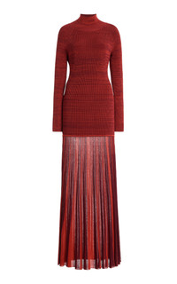 Pleated Ribbed-knit Turtleneck Gown