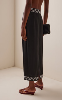 Those in the know have been staunchly following Lucy Akin’s rise—and with good reason: she captures an effortless L.A. cool that appeals to women all over. The Elly Skirt is a high waisted black satin midi length column skirt. Featuring a back zip and white floral embroidery at the waist and bottom hemline, pair the Elly with our matching Arlene Jacket for the chicest holiday ensemble. PRODUCT DETAILS - Fall '25 - Zip fastening - Composition: 100% polyester - Dry clean - Imported