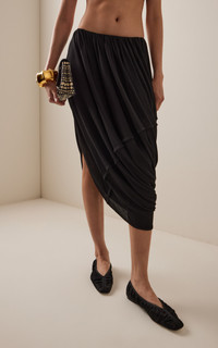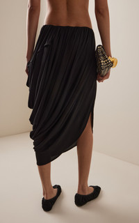 CO delivers a curated wardrobe that mirrors a woman’s multifaceted life, emphasizing practicality without sacrificing style. Effortless structure in a fluid silhouette. Crafted from soft viscose, this sculptural skirt features artful draping and a clean, tapered hem. Designed to sit on the low waist with an invisible zip closure, it falls to approximately 15" in length. PRODUCT DETAILS - Slip on - Composition: viscose - Dry clean - Imported SIZE & FIT - Designed to sit at the low waist. S= 28” in waist circumference. 2” difference between sizes.