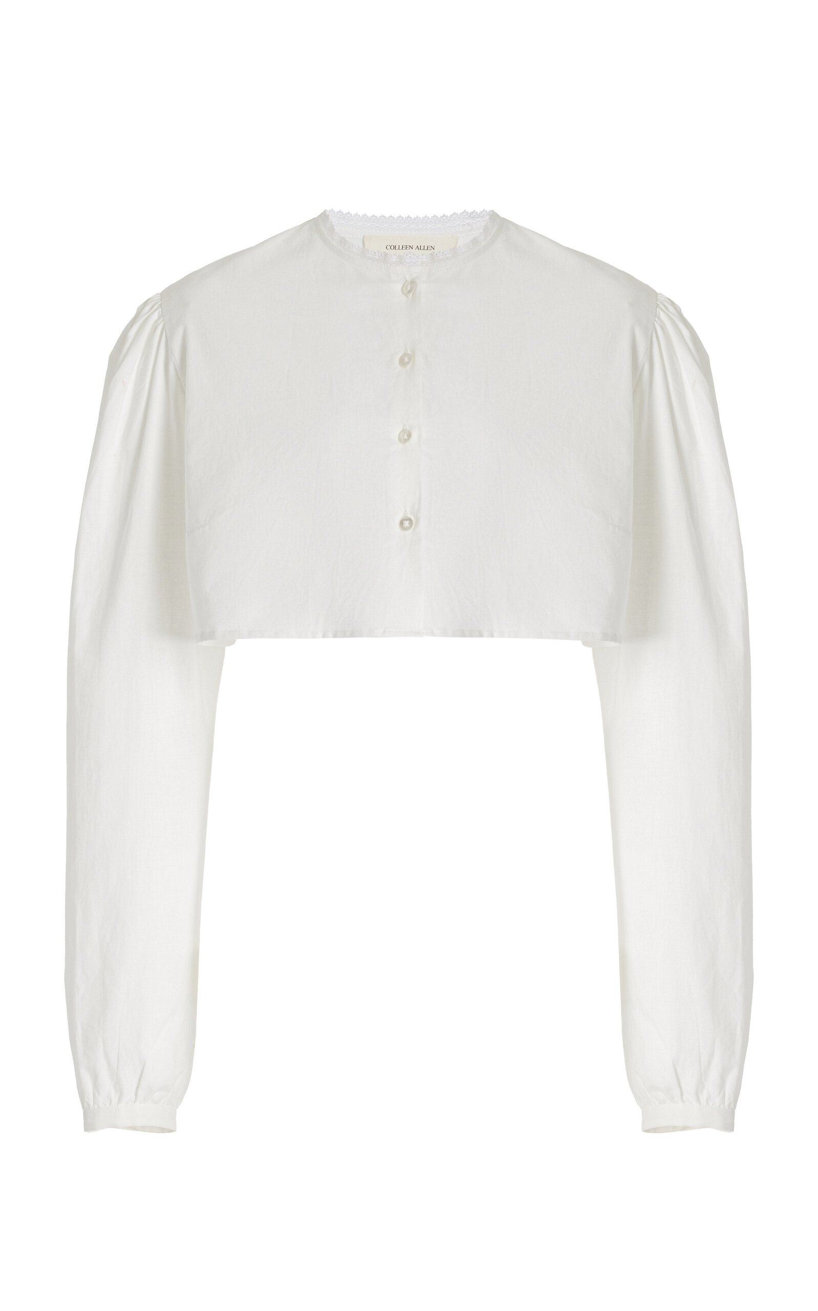 The young creative director and former menswear designer launched her ready-to-wear women’s collection in February ‘24 to critical acclaim. This season, each piece adds to the label’s ethereal aesthetic, exploring femininity through mythical archetypes. Offering a modern approach to shirting, this cropped top is made from crisp cotton-poplin, tailored to a boxy shape with a round collar. Style yours buttoned to the top, with a pair of low-rise shorts. PRODUCT DETAILS - Spring/Summer ‘25 - Button fastening - Composition: 100% cotton - Dry clean - Designer Color: Natural White - Made in the USA SIZE & FIT - Our model is wearing a size Small - Model is 5'11" with a 30" bust, 24" waist, and 34" hip