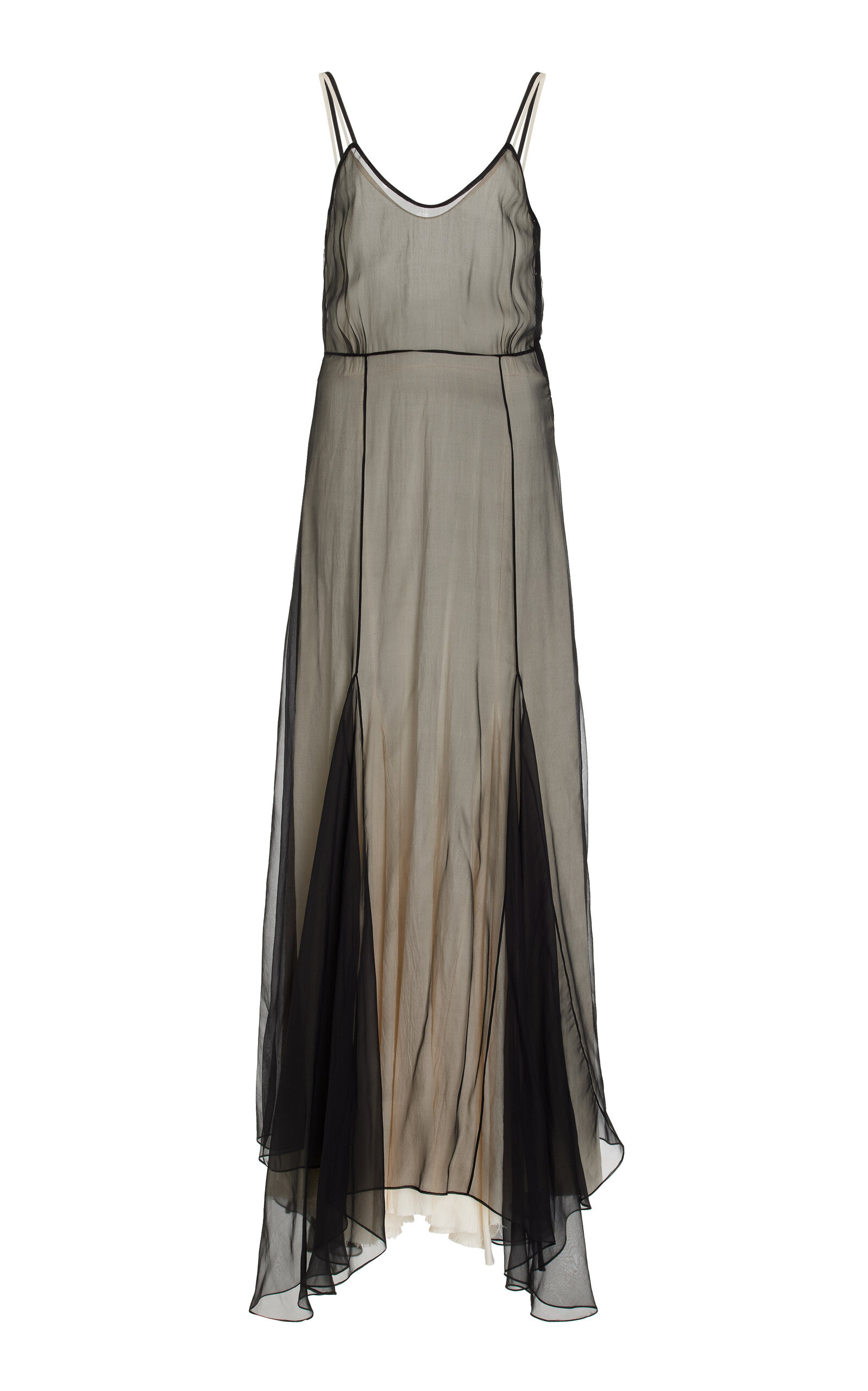 The young creative director and former menswear designer launched her ready-to-wear women’s collection in February ‘24 to critical acclaim. This season, each piece adds to the label’s ethereal aesthetic, exploring femininity through mythical archetypes. This dreamy maxi tells a story of mystique and enchantment, aligning with the brand’s eerie nature. Natural-white cotton is layered beneath sheer black silk for a two-tone effect and is cut to a slim profile with godet panels to achieve a flared skirt. Customize yours with ankle boots and minimal jewellery. PRODUCT DETAILS - Spring/Summer ‘25 - Concealed zip fastening - Composition: fabric1: 100% silk; fabric2: - Dry clean - Made in the USA SIZE & FIT - Our model is wearing a size Small - Model is 5'11" with a 30" bust, 24" waist, and 34" hip