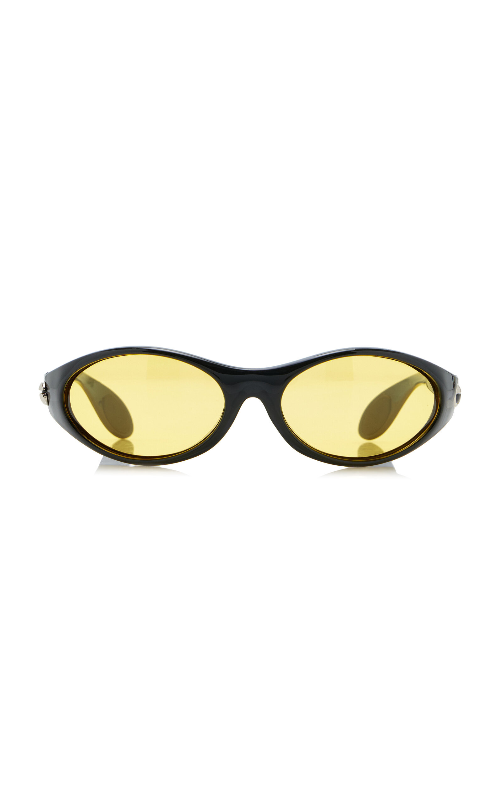 Showcasing their expertise in spinning cool, seemingly minimal pieces from complex constructions, French talents Sebastien Meyer and Arnaud Vaillant offer a range of instantly cult-worthy designs. Inspired by cycling pairs, these sunglasses feature round frames made from lightweight acetate set with yellow lenses. PRODUCT DETAILS - Composition: acetate - 100% UV protection - Made in Italy