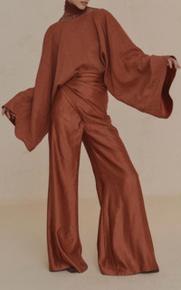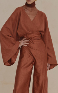 Glow Linen-Blend Wide-Leg Wrap Pants red