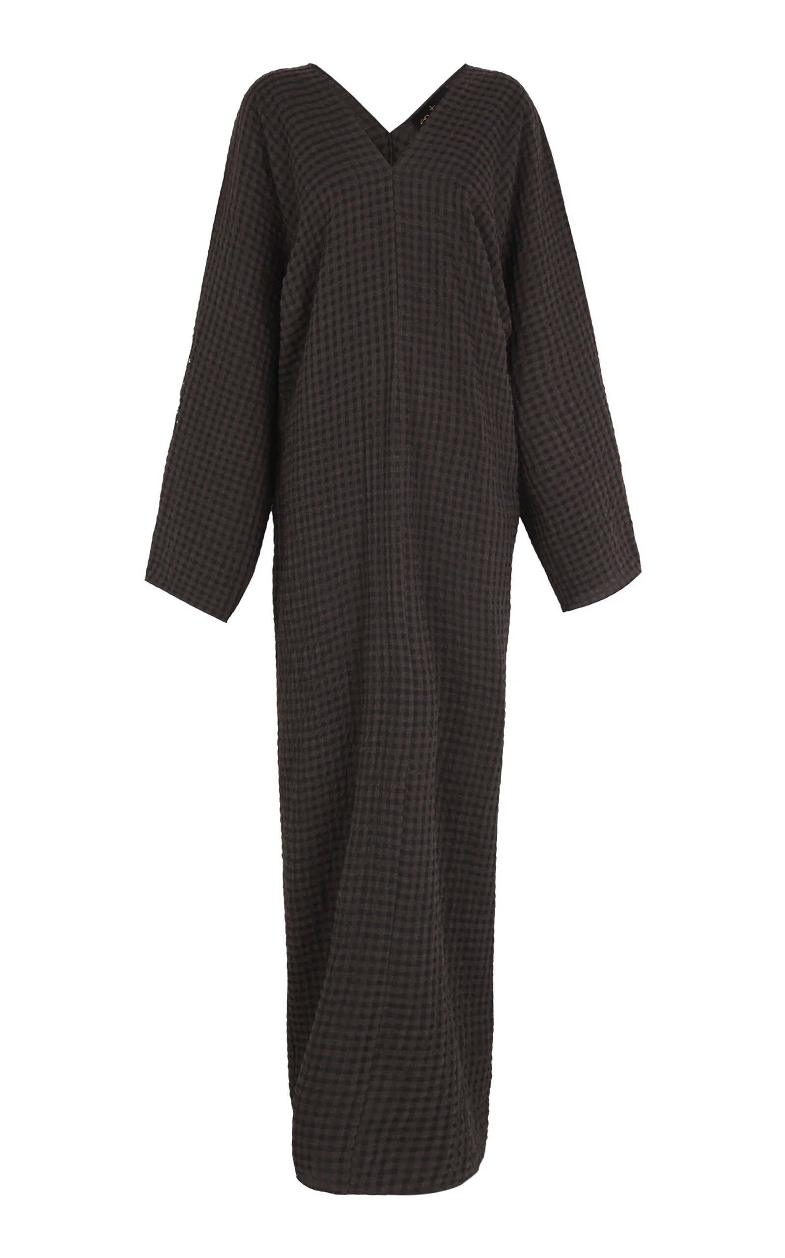 PRODUCT DETAILS - Relaxed fit, long bell sleeves, V-neckline, maxi hem - Slip on - Composition: 60% Wool 40% Viscose - Color: print - Dry clean - Fall/Winter 2025