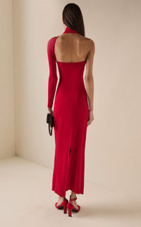 After 12 years alongside Nicolas Ghesquiere and a brief stint at Dior with Raf Simons, Courreges artistic director Nicolas Di Felice has brought the renowned French fashion house back to life. Constructed with a compact knit, this sculpting maxi is designed with an asymmetric neckline, open back and centre splits through the skirt to enhance movement. Wear with matching shoes and a contrasting clutch. PRODUCT DETAILS - Fall/Winter ‘25 - Pull on - Composition: 70% viscose, 30% polyester - Dry clean - Imported