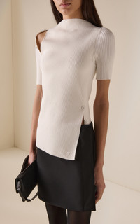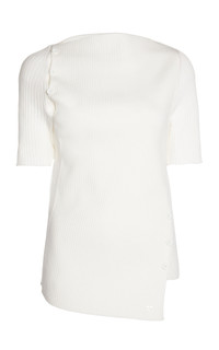After 12 years alongside Nicolas Ghesquiere and a brief stint at Dior with Raf Simons, Courreges artistic director Nicolas Di Felice has brought the renowned French fashion house back to life. The label crafts this top from a sculpting ribbed knit in ‘Heritage’ white. It boasts a close-fitting frame with an asymmetric hem and button fastenings that encourage a personalised look. Wear with tailored miniskirts and straight-leg pants. PRODUCT DETAILS - Fall/Winter ‘25 - Button fastening - Composition: 70% viscose, 30% polyester - Dry clean - Designer Color: Heritage White - Imported