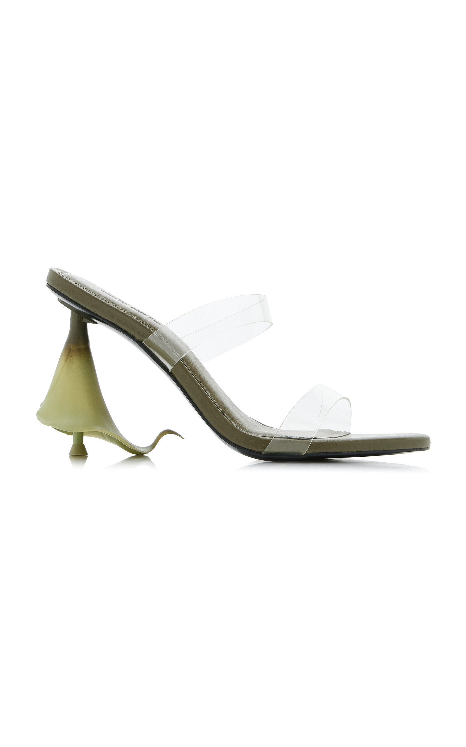 L.A.-based Jasmin Larian Hekmat, the brains behind the cult-favorite Ark bag, returns with more ultra-desirable accessories in her Cali-infused, bohemian style. A clear sandal with transparent vinyl toe and ankle strap, designed with a calla lily heel. PRODUCT DETAILS - Heel height measures 90mm/ 3.5" - Slip on - Composition: PVC - Designer color: Rosemary - Imported