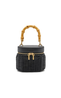 L.A.-based Jasmin Larian Hekmat, the brains behind the cult-favorite Ark bag, returns with more ultra-desirable accessories in her Cali-infused, bohemian style. A rattan clutch that's sized to fit the small essentials—think lipstick, cards and keys. PRODUCT DETAILS - Top handle - Zip fastening - Composition: 100% natural rattan, trim: 100% cow leather - Imported