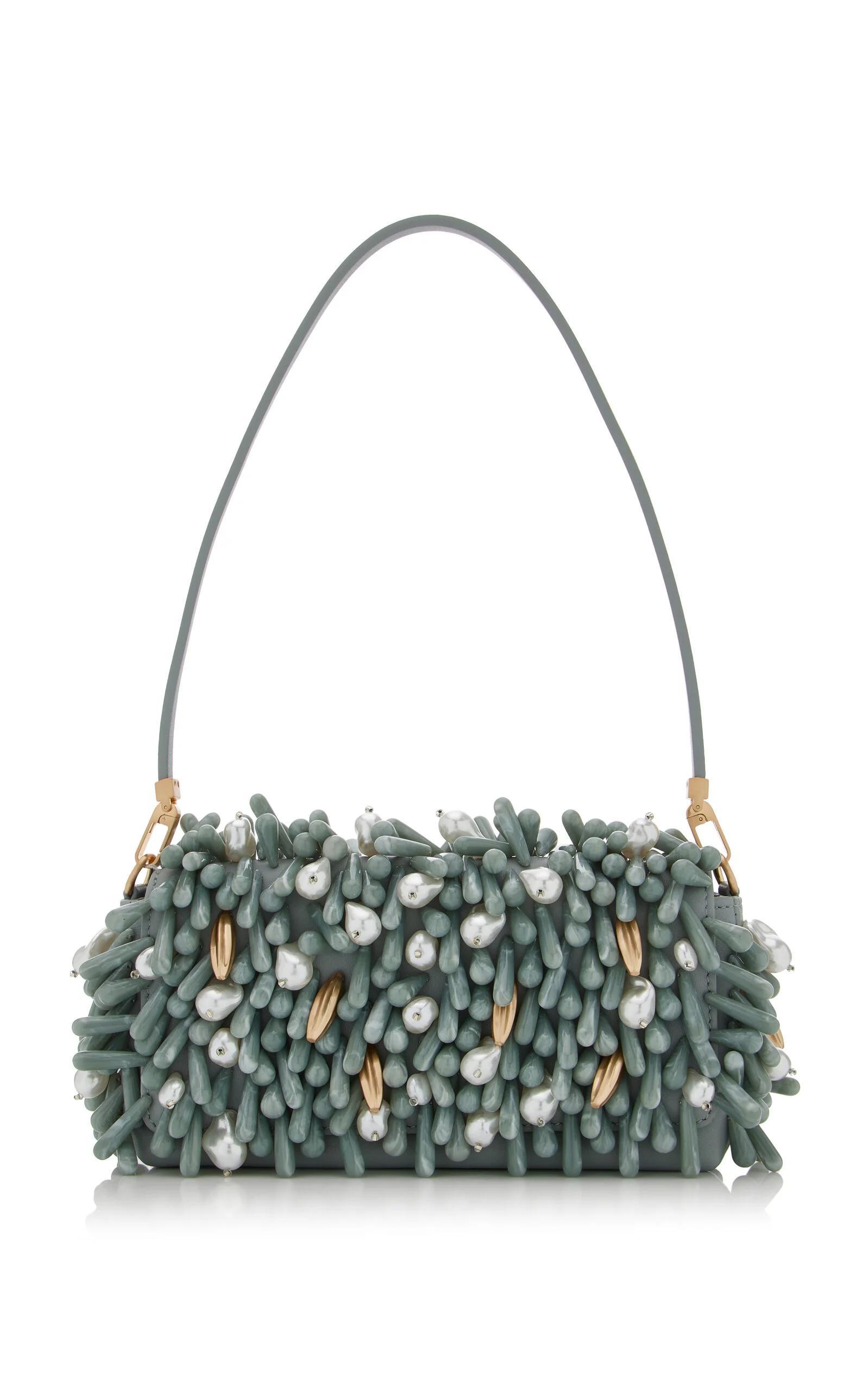 L.A.-based Jasmin Larian Hekmat, the brains behind the cult-favorite Ark bag, returns with more ultra-desirable accessories in her Cali-infused, bohemian style. 'Perla' is an eye-catching clutch made from leather shrouded in faux pearls. PRODUCT DETAILS - Removable chain strap - Magnetic fastening - Composition: leather, resin beads - Imported
