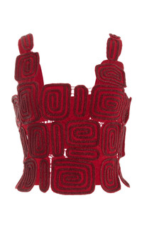 L.A.-based Jasmin Larian Hekmat has cornered the market for fashion-forward pieces inflected with the ease of California. Informed by her coastal lifestyle, she mixes playful details in flirty dresses and artful sets you’ll return to year after year. The 'Reia' top is crafted from wool fabric disks woven together and embroidered with spiral bead embellishments. PRODUCT DETAILS - Fall/Winter '24 - Slip on - Composition: 60% Wool, 40% Polyester - Designer color: Merlot - Dry clean - Imported SIZE & FIT - Our model is wearing a size Small - Model is 5'11" with a 31.5" bust, 23" waist, and 35" hip - Designed for a slim fit