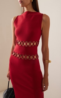 L.A.-based Jasmin Larian Hekmat has cornered the market for fashion-forward pieces inflected with the ease of California. Informed by her coastal lifestyle, she mixes playful details in flirty dresses and artful sets you’ll return to year after year. The 'River' is a maxi knit dress spun from stretchy viscose-nylon punctuated with central o-ring cutouts. PRODUCT DETAILS - Fall/Winter '24 - Slip on - Composition: 65% Viscose, 35% Nylon - Designer color: Merlot - Dry clean - Imported SIZE & FIT - Our model is wearing a size Small - Model is 5'11" with a 31.5" bust, 23" waist, and 35" hip - Designed for a slim fit