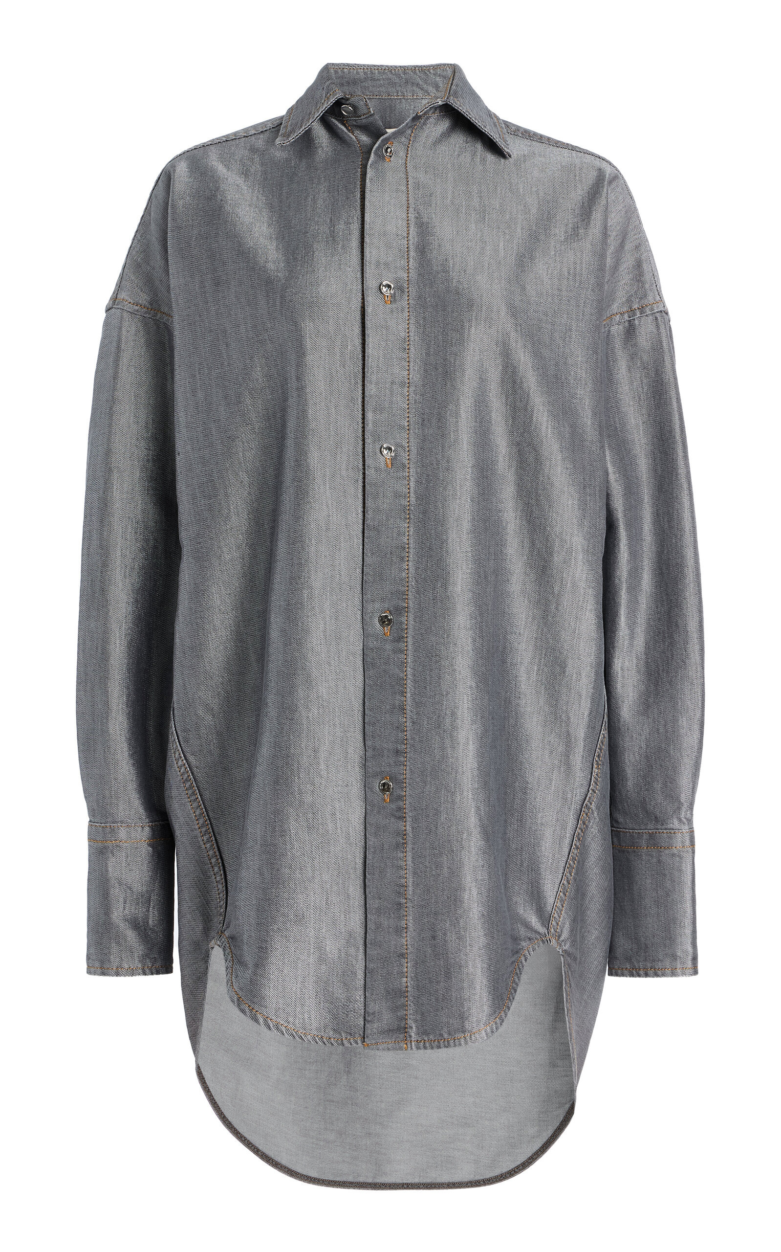 Founded in 2021 by Inna Gerchikov, DARKPARK is inspired by her desire to find bottoms that fit her personal style. Today, it’s the go-to destination for pants and denim embracing experimental washes, quirky treatments, and unconventional designs presented through roomy, wide-legged silhouettes. The 'Carla' has an oversized fit made from a metallic denim. Wear yours with the matching jean. PRODUCT DETAILS - Pre-Fall '25 - Button fastening - Composition: 92% cotton, 8% polyester - Designer color: Glass - Dry clean - Made in Italy SIZE & FIT - Designed for an oversized fit