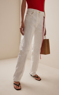 Founded in 2021 by Inna Gerchikov, DARKPARK is inspired by her desire to find bottoms that fit her personal style. Today, it’s the go-to destination for pants and denim embracing experimental washes, quirky treatments, and unconventional designs presented through roomy, wide-legged silhouettes. 'Naomi' is a chain-adorned boyfriend straight-leg jean. PRODUCT DETAILS - Pre-Fall '25 - Zip fly fastening - Composition: 100% cotton - Designer color: Washed White - Dry clean - Made in Italy SIZE & FIT - Designed for a relaxed fit