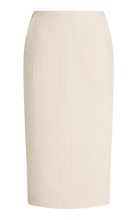 A firm fixture on the red carpet, the London designer is a favorite of editors and actors alike for his sophisticated sex appeal and precisely-tailored, taut party pieces. Crafted from textured boucle, this midi skirt is tailored to a slender pencil shape with a back vent for ease with movement. PRODUCT DETAILS - Spring/Summer '25 - Concealed zip fastening along back - Composition: Main Fabric: 98% Wool, 2% Polyamide; Lining: 64% Viscose, 36% Polyester - Dry clean only - Made in the UK SIZE & FIT - Designed for a slim fit