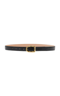 Dehanche: The French word for the asymmetrical position of the hips in ancient Greek statues. Inspired by vintage belts from the 80s and 90s, the label takes a modern approach to to the wardrobe staple with references with art and architecture. Designed to strike the perfect balance between casual everyday wear and sophisticated dressy affairs, the streamlined 'Mija' is a testament to understated elegance. Handcrafted in Italy from glossy patent leather, it's backed by signature nubuck and topped with a gold buckle. PRODUCT DETAILS - Buckle fastening - Composition: lacquered leather - Made in Italy
