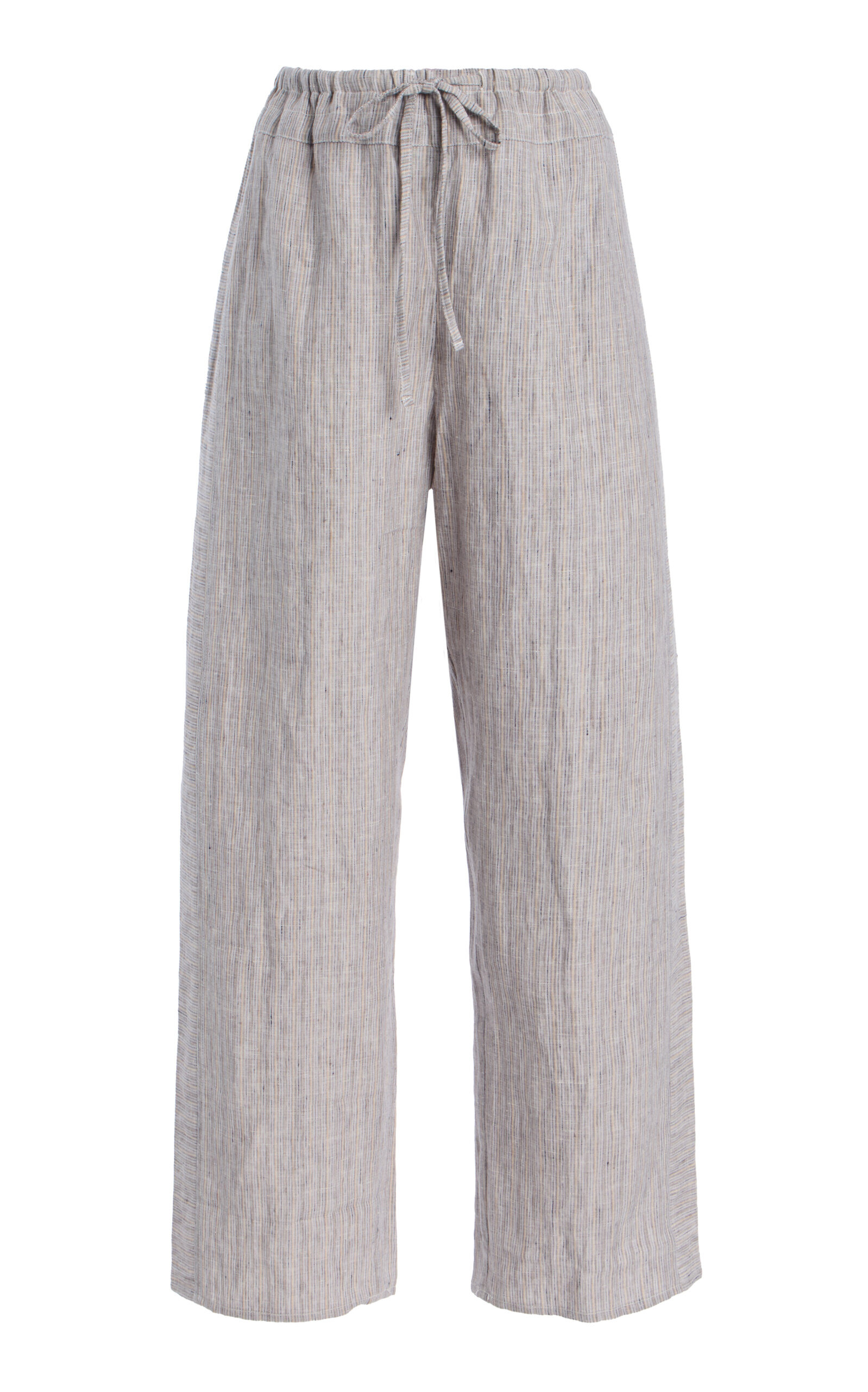 Double-Waist Organic Linen Wide-Leg Pants grey