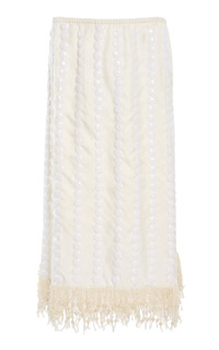 Coverley Embellished Fringed Silk-satin Midi Skirt